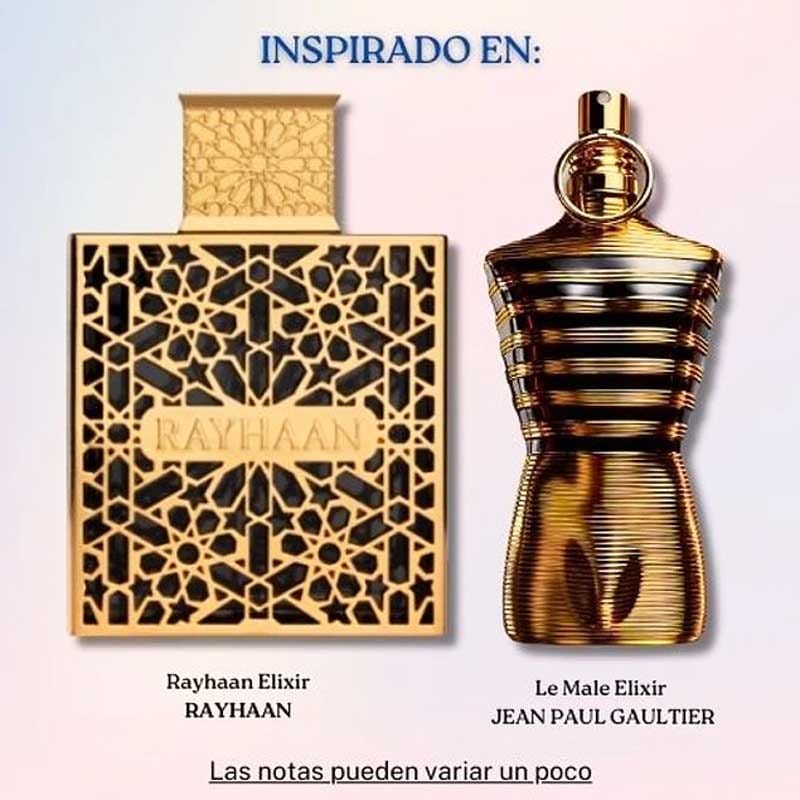 El perfume Rayhaan Elixir Eau de Parfum es una fragancia unisex de alto impacto, lanzada en 2023 por la casa Rayhaan. Innovadora y versátil, esta creación fusiona la calidez oriental con un frescor especiado, logrando una estela magnética y envolvente que atrapa y seduce desde el primer instante. Destaca como clon asequible del perfume Le Male Elixir de Jean Paul Gaultier reconocida por su complejidad.