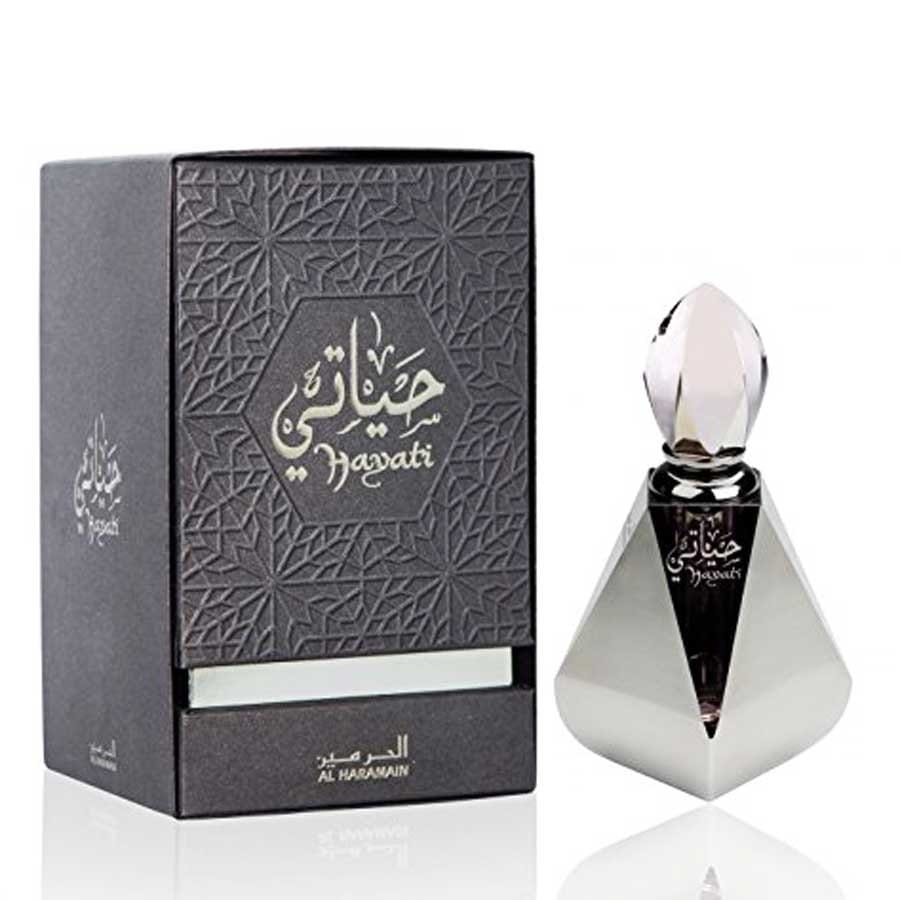 - A medida que la fragancia Al Haramain Hayati se asienta en la piel, revela un corazón de musk, rosa y azúcar, un equilibrio perfecto entre la dulzura sutil y la profundidad aromática que caracteriza a los perfumes de medio oriente.