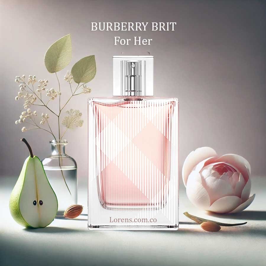 - El corazón del perfume Brit for Her de Burberry está compuesto por peonía blanca y almendra acaramelada, que le aportan un toque floral suave y una dulzura envolvente.