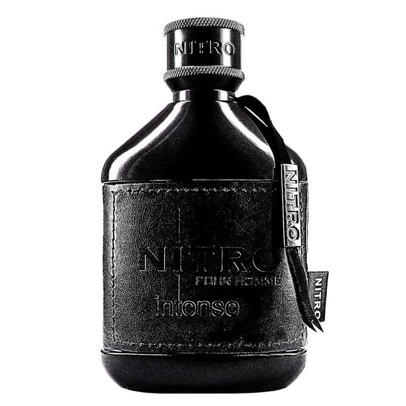 El frasco de la fragancia Nitro Intense refleja la modernidad y el estilo de la fragancia, presentándose en un diseño elegante y contemporáneo.