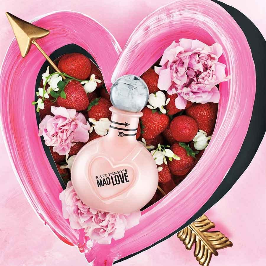 - La fragancia Mad Love se abre con una explosión chispeante de fresa, manzana verde y sorbete de frutas, creando una primera impresión divertida, fresca y juvenil.