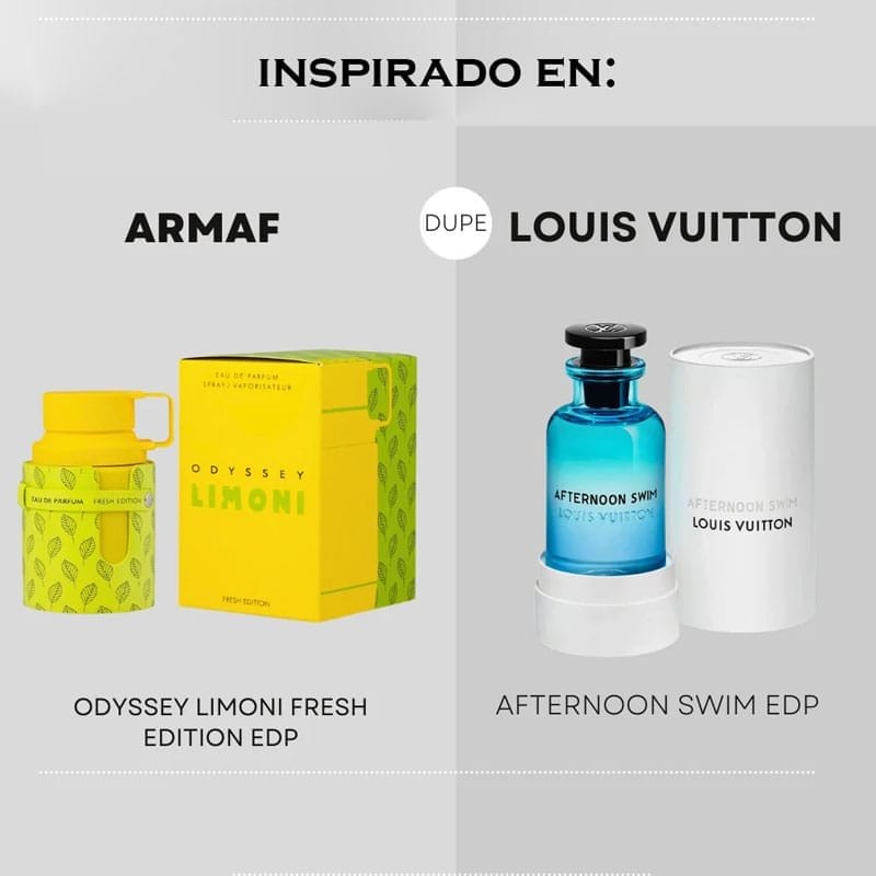 Una fragancia cítrico y sofisticado, clon de Louis Vuitton Afternoon Swim. Ideal para verano, combina frescura energética, elegancia y una estela duradera.